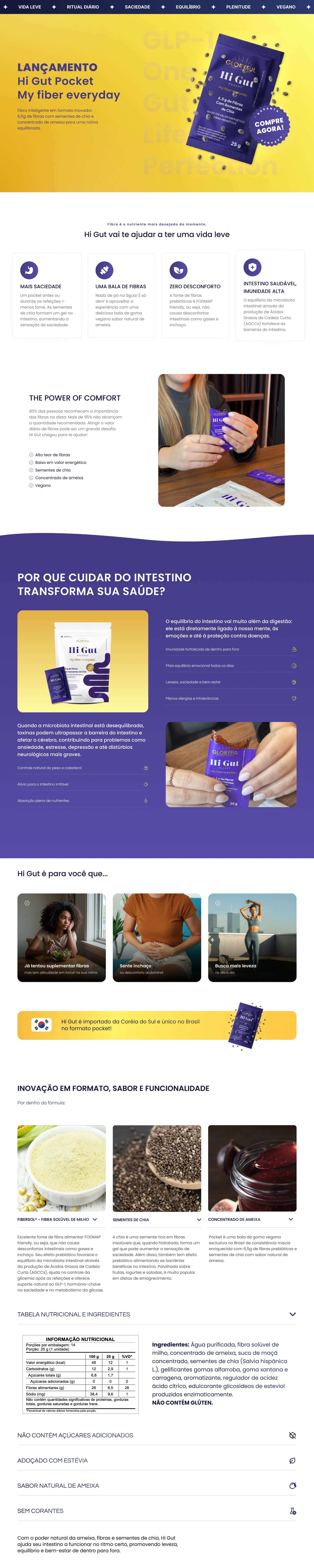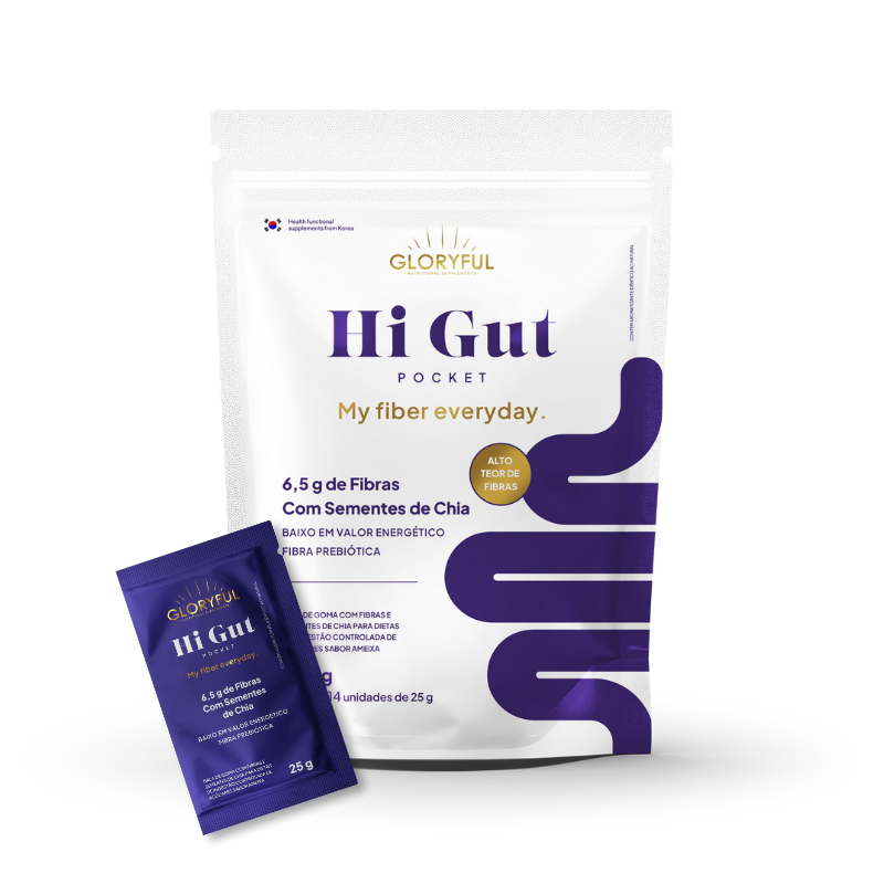 Fibra inteligente em formato inovador de Pocket: bala de goma vegana exclusiva no Brasil de consistência macia enriquecida com fibras prebióticas, sementes de chia e concentrado de ameixa.